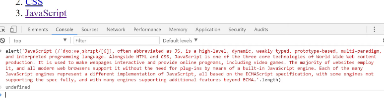 - 여기서 입력하여 실행하면 자바스크립트가 보고있는 웹페이지를 대상으로 실행됨.