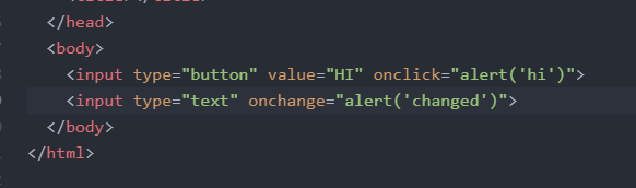 - alert 알림, onchange 변화가 발생했을때, 이 경우는 문자를 입력했을 때 changed 라는 창 발생